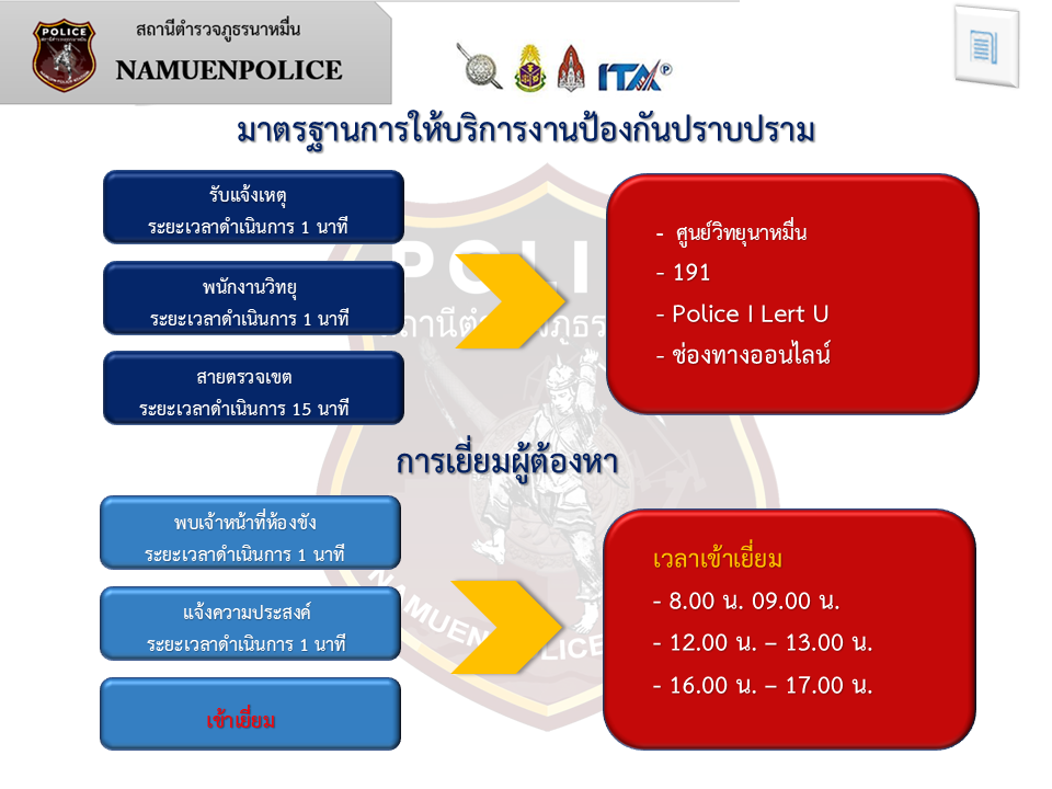 มาตรฐานการให้บริการงานป้องกันปราบปราม ของสถานีตำรวจภูธรนาหมื่น