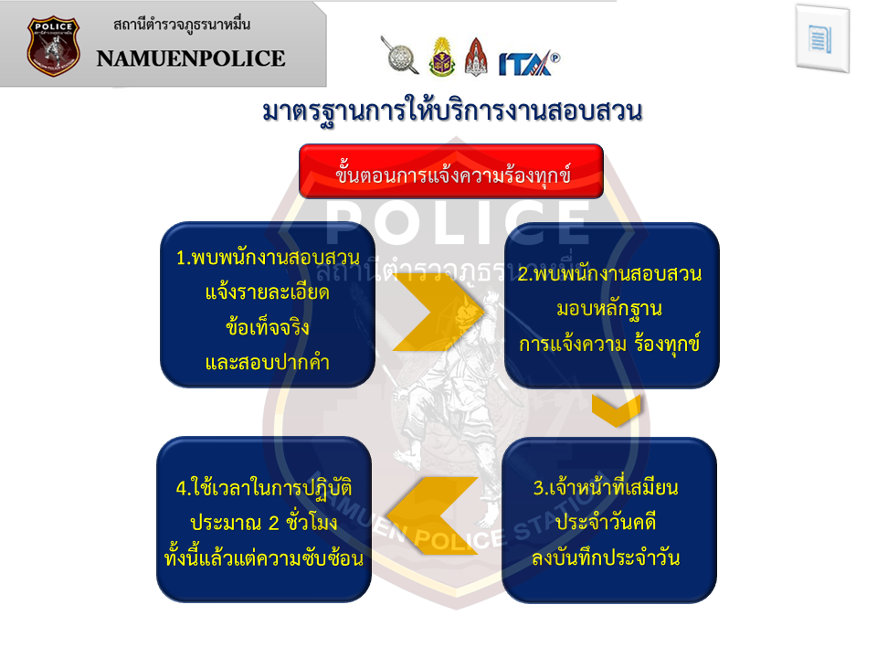 มาตรฐานการให้บริการงานสอบสวน ของสถานีตำรวจภูธรนาหมื่น