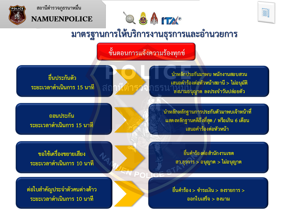 มาตรฐานการให้บริการงานธุรการและอำนวยการ ของสถานีตำรวจภูธรนาหมื่น