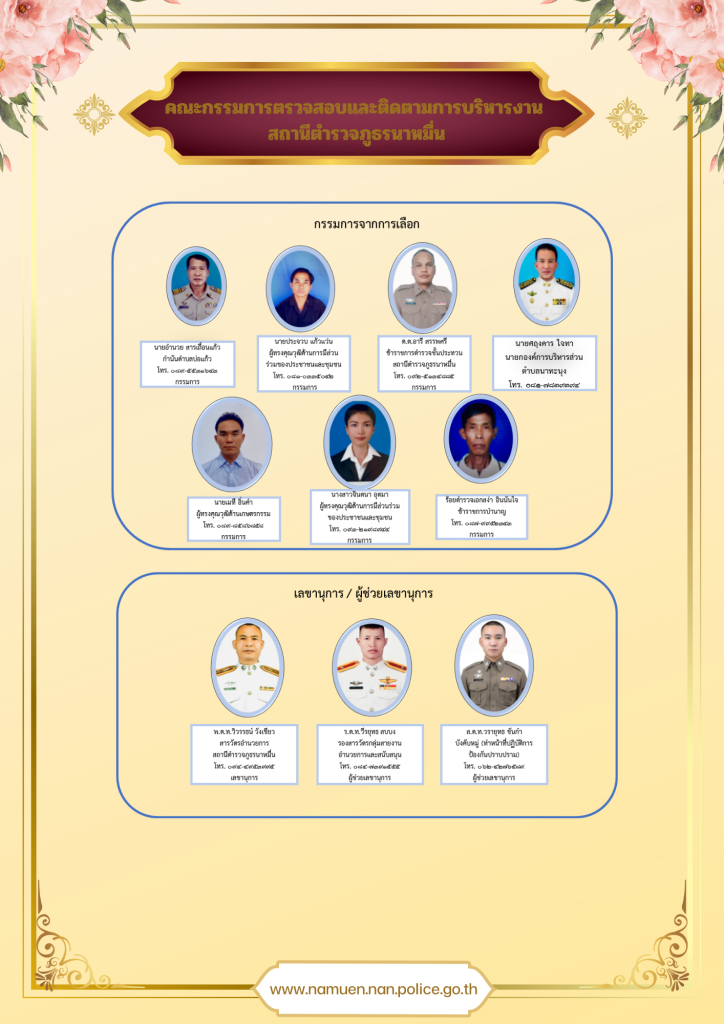 4. ตรวจสอบติดตาม และประเมินผลการปฏิบัติงานของข้าราชการตำรวจในสถานีตำรวจให้เป็นไปตามนโยบาย ก.ต.ช.
